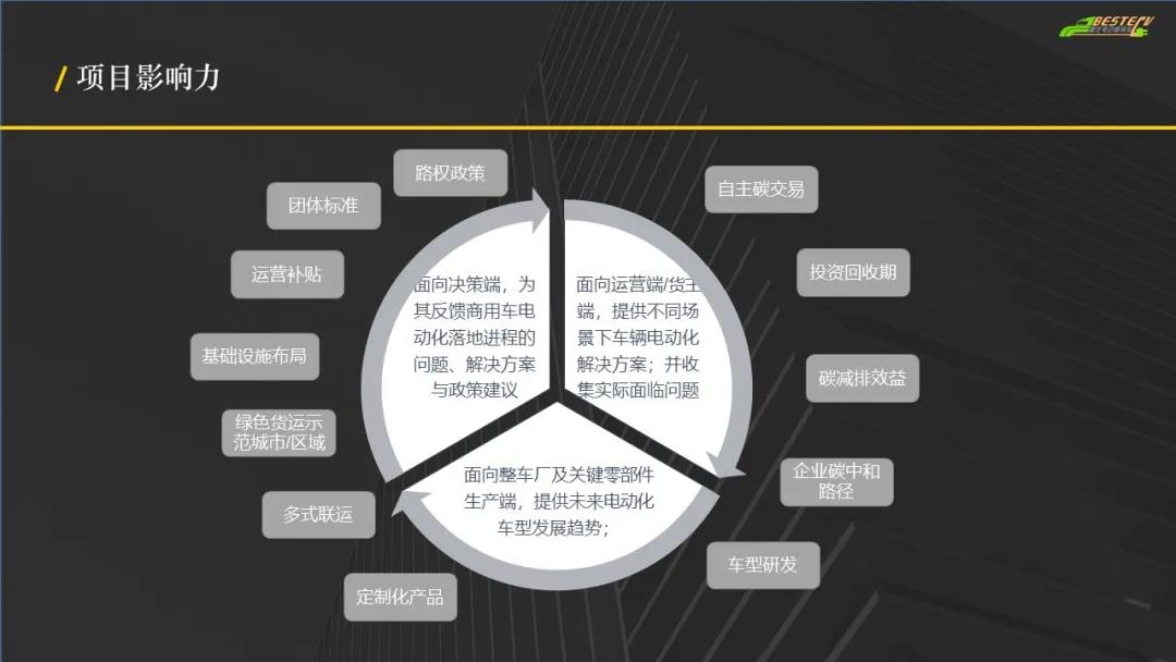 在此背景下,为了更好的推动商用车电动化进程的落实,iCET在能源基金会支持下发起了“BestECV最优电动商用车”项目,通过全面与系统地梳理商用电动车发展前景及路径,建立一套完整的用户友好型ECV在线评估系统BestECV™。