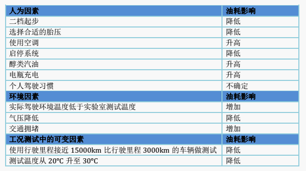 引起实际油耗与认证油耗差异的原因