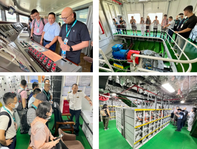 Inside the battery compartment, engineers provided detailed explanations of the vessel’s power usage, battery capacity, safety and risk-control measures, and its fire-prevention system. In the integrated control room, the captain demonstrated how dynamic monitoring and early-warning systems support emergency response under unexpected conditions, and further explained the operating principles, main functions, and maintenance procedures of the steering-propulsion system.